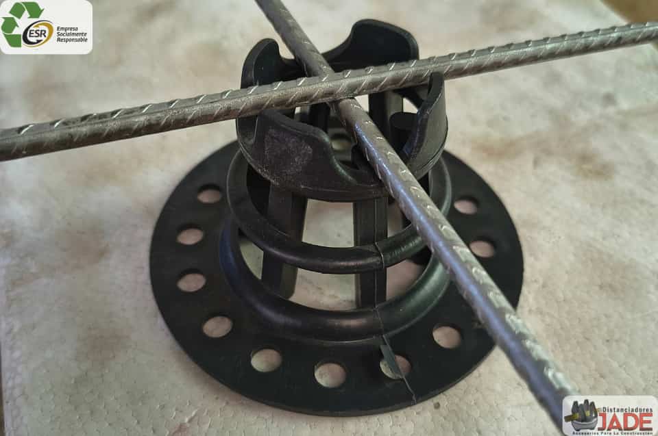 Medidas desde 2,5 cm hasta 12 cm, recibe mallas electro-soldadas y aceros desde 1/4″ hasta 5/8″ se recomiendan 2 unidades por metro cuadrado, elaborado en polipropileno peletizado reciclado de alta resistencia.