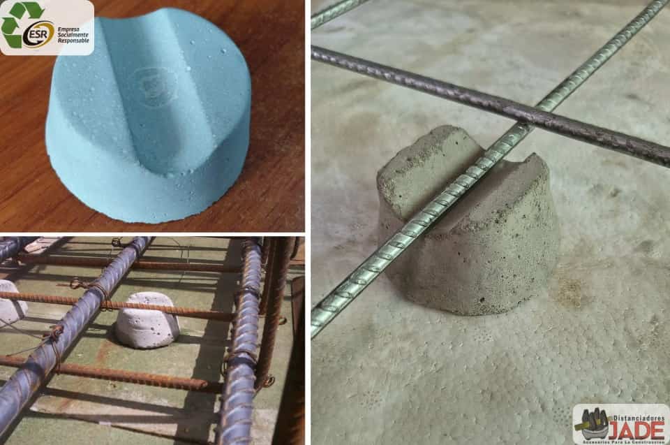 Medidas desde 2.5 cm hasta 7.5 cm, recibe mallas electro-soldadas y aceros desde 1/4″ hasta 3/4″ compatible con el concreto evitando fisuras en su estructura, se usan menos unidades, por su alta resistencia de 4000 psi, en comparación con las silletas plásticas, se recomiendan 2 unidades por metro cuadrado.